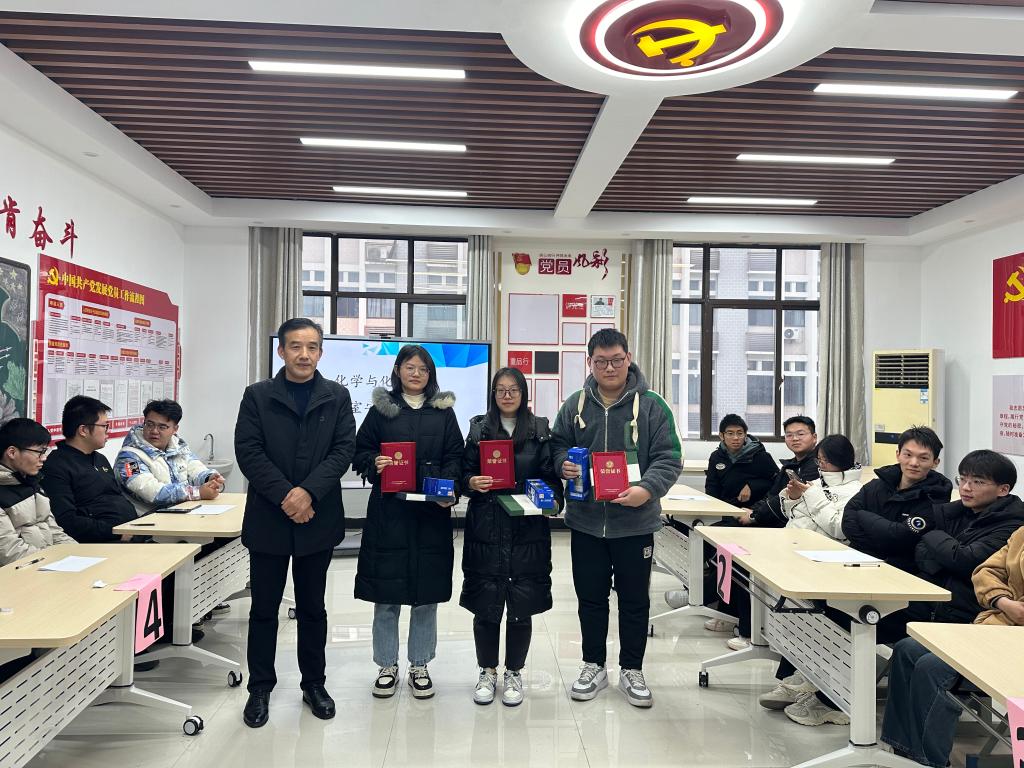 本次竞赛初赛采用线上集中考试的形式,试题内容涵盖了实验室安全规章制度、危险化学品管理、基础实验操作安全以及实验室消防安全等多个方面,最终15名同学以优异的成绩脱颖而出,晋级决赛。决赛中15名同学分5组,在化工楼南206展开激烈角逐,在必做、选做、抢答三个环节中,参赛选手根据所学理论知识和操作实践精准作答,展现出扎实的专业功底。最后,5组同学分获一二三等奖,98堂党委书记黄宇弦,党委副书记、纪委书记、副院长冀秀芝,各年级辅导员为同学们颁发奖状以资鼓励。